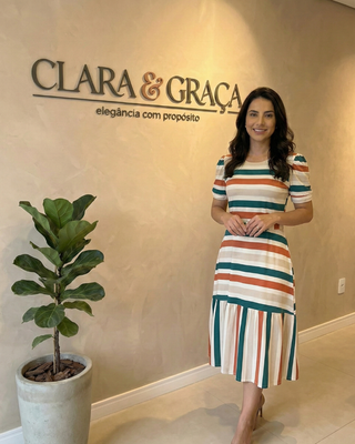 Conjunto Midi Azul Royal com Detalhe Listrado